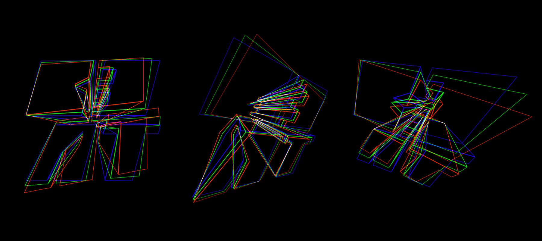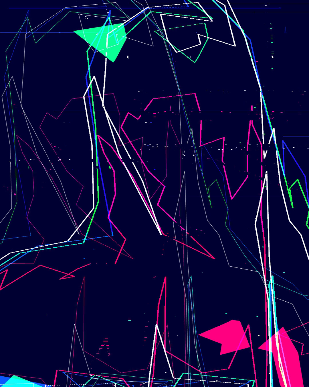 Generative and audio reactive real-time geometry and glitch using a Kinect and myself.