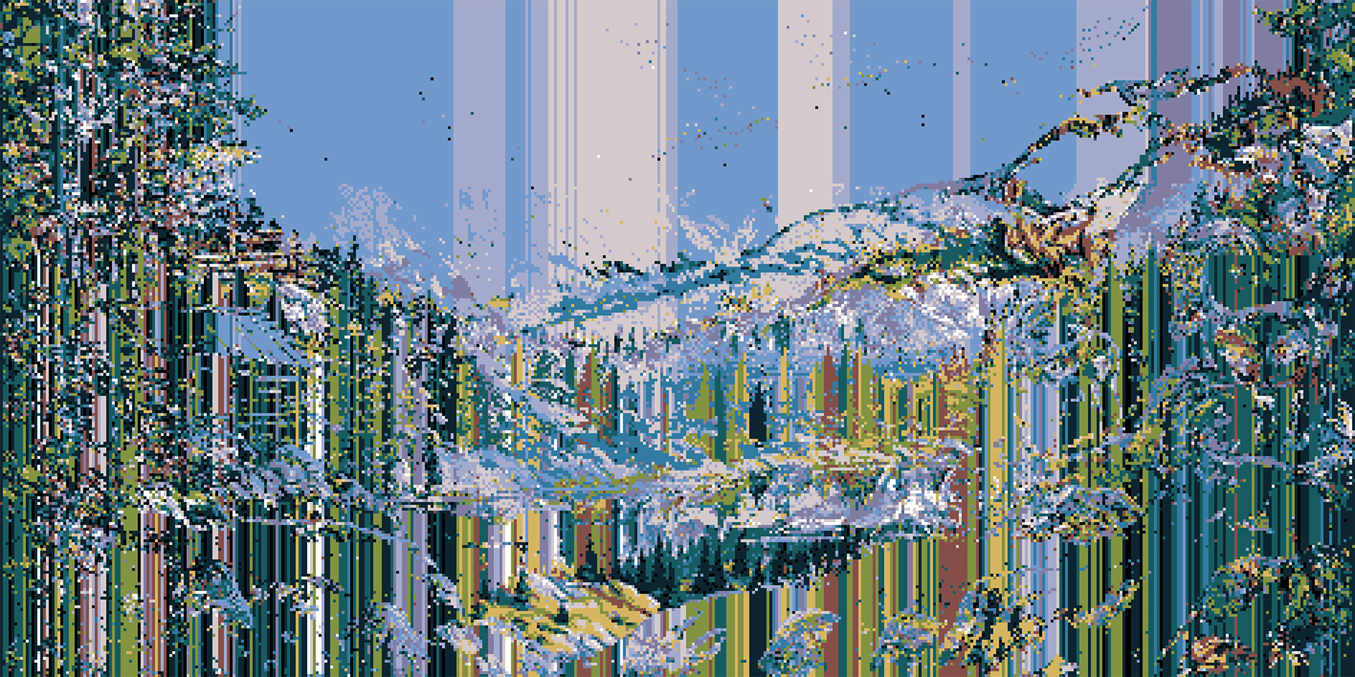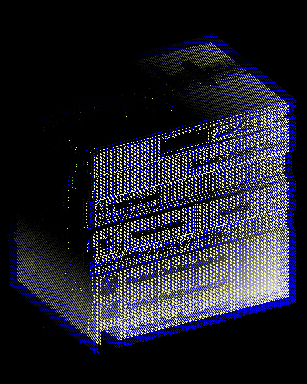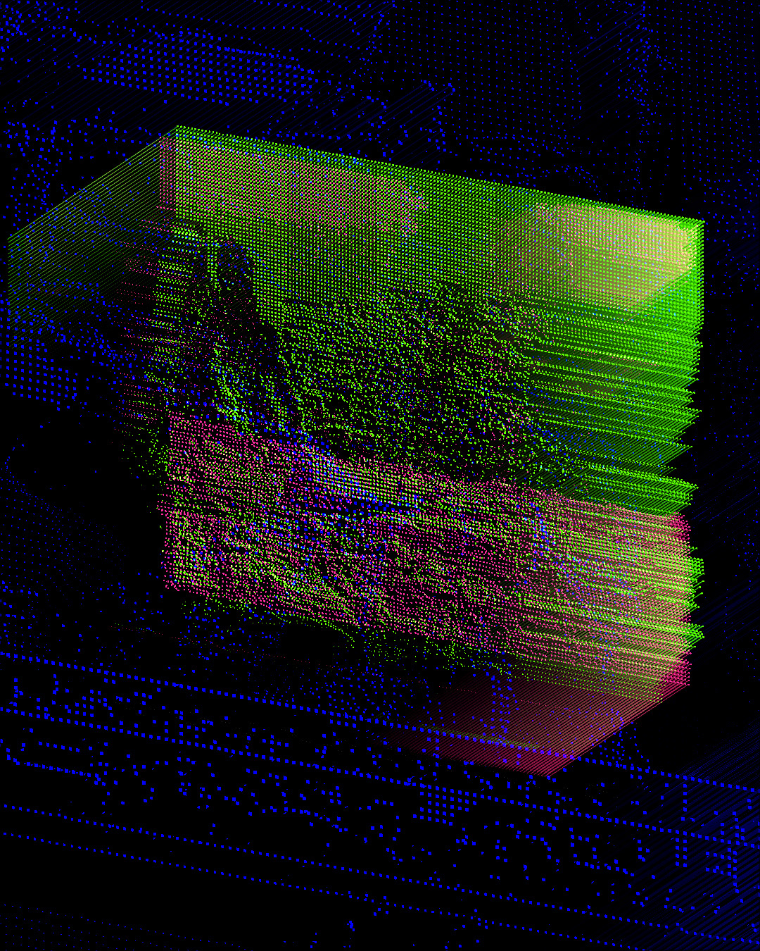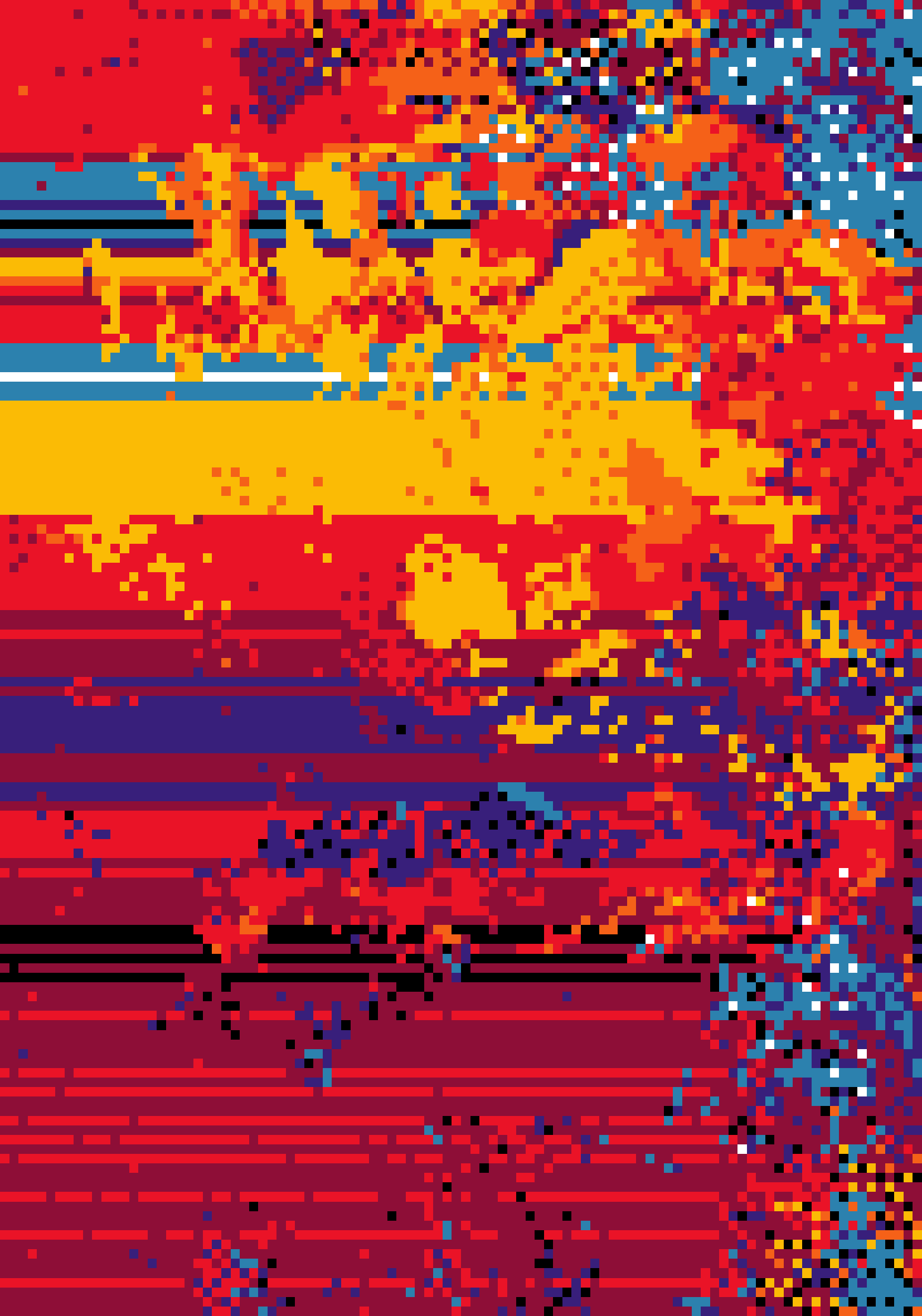 Procedural and audio reactive glitch on 2m x 3.50m LED screen.